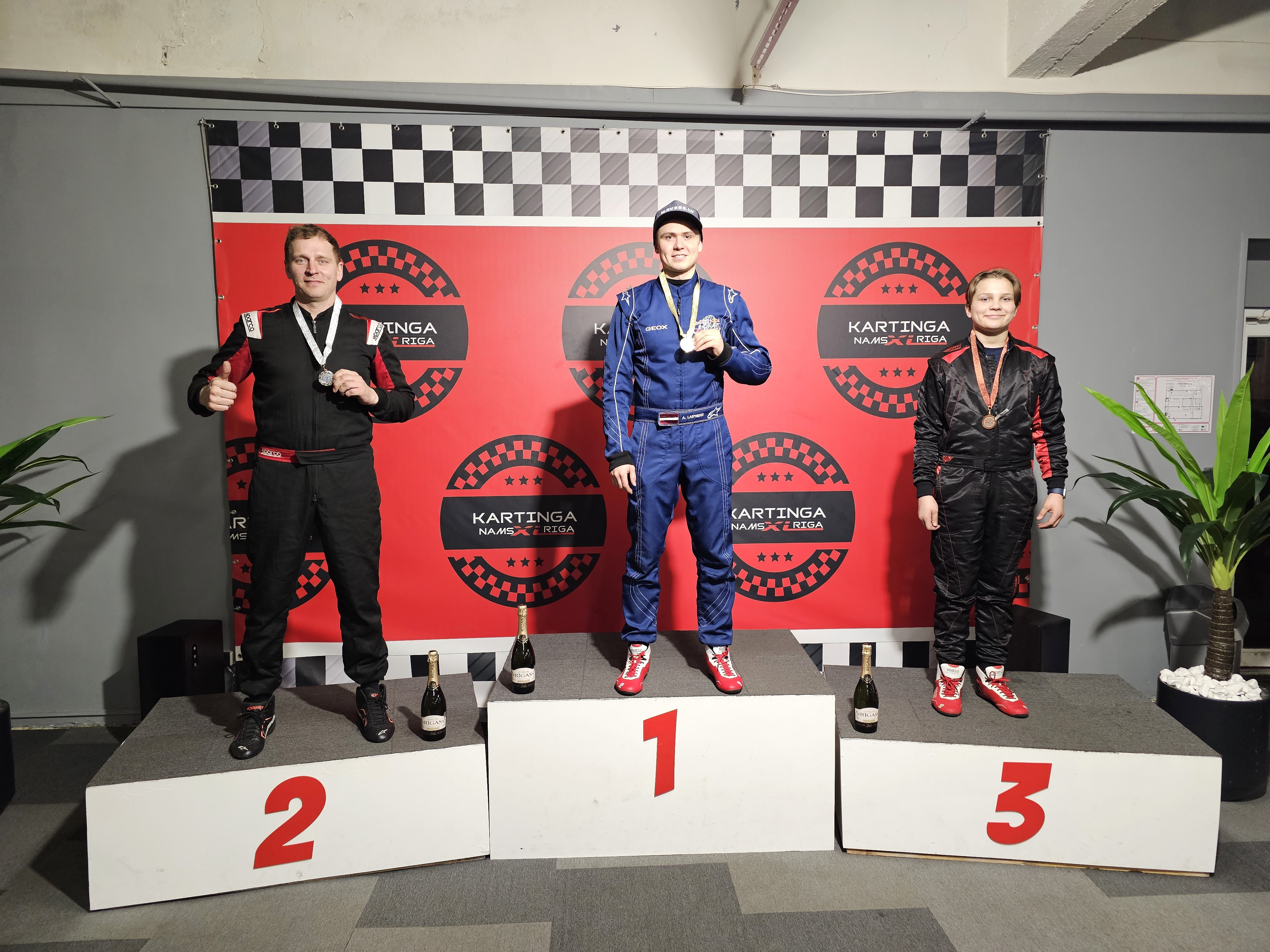 Ja par uzvaru savas attiecības trasē kārtoja Andrejs un Ruslans par ko nevienam īsti nebija pat šaubu., tad cīņa par trešo vietu izvērtās daudz negaidīgāka un aizraujošāka. Tajā iesaistījās 2022. gada kopvērtējuma trešās vietas ieguvējs Edgars Sproģis, kurš starp citu janvāra sākumā finišēja otrais Openkart Ceļojošā kausa izcīņā. Otrs bija viens no šīs sezonas galvenajiem gada debitanta pretendentiem - Aleksandrs Špatcs un trešais pašmāju SWS Junior Cup Latvijas nacionālā ranga pašreizējais līderis Edgars Lielgalvis. Ne pirmo reizi uzrādot fantastisku noslēdzošo braucienu, par mata tiesu savu pirmo Openkart sacensību pjedestālu burtiski izrāva Edgars Lielgalvis, tikai par 0,053 sekundēm sešu braucienu summā pārspējot Sproģi, kas tikai par 0,002 sekundēm bija priekšā Špatcam.