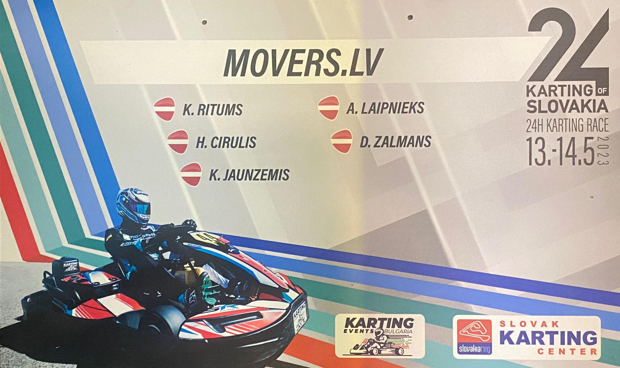 No 24 stundu izturības sacīkstēm slavenajā SlovakRing motoru sporta kompleksā nule kā atgriezušies "Movers.lv" ar Andreju Laipnieku, Kasparu Ritumu, Krišu Jaunzemi, Dāvi Zalmanu un Hariju Cīruli braucēju sastāvā un Rūdolfu Šmitu, Kristapu Grīnieku un Mārci Jaunzemi atbalsta menedžmentā, kas šād tipa stratēģiskās un taktiskās sacīkstēs ir ne mazāka nozīme kā pašiem braucējiem. nule kā atgriezušies slavenajā SlovakRing motoru sporta kompleksā, kas ir arī SWS 2023. gada Pasaules fināla norises vieta pēc nedaudz mazāk kā diviem mēnešiem. 60, vēlreiz atkārtoju 60 (!!!), komandu konkurencē izcīnīta pietiekami zolīdā 18. vieta, lai gan, pašu vārdiem sakot, šī bija pieredzes sacīkste jau sākot ar slapjajiem treniņiem piektdien. Kvalifikācijā pieļauta stratēģiska kļūda, jo atšķirībā no slapjās piektdienas, sestdiena bija sausa un lēmums dot visiem komandas braucējiem vienādu laiku aprast ar trasi nevis "makšķerēt" kartus maksāja 48. vietu. Kāpums sacīkstē par 30 vietām galīgi nav peļams, nakts otrajā pusē atgriezās lietus un mēsējiem apļu laiki bija top seši un vēl pat augstākā līmenī, bet bija arī visai dārgas kļūdas.