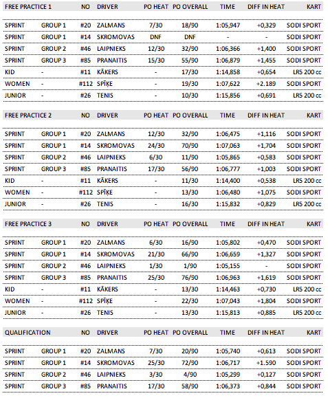 Noslēgusies pirmā diena SWS Pasaules finālā Slovākijā. Individuālās kategorijas aizvadīja pa trim treniņu sesijām un dienas noslēgumā notika Sprint Cup kvalifikācija rītdienas pirmajam iebraucienam. Sprint Cup sākums lika nedaudz uztraukties, ja Dāvis Zalmans nobrauca savu mērķu līmenī tas ir TOP20, tad Andreja Laipnieka pirmais treniņš lika saraukt uzacis, bet dienas gaitā viss nostājās savās vietās un noslēdzošjā treniņā labākais laiks un otrais labākai treniņu laiks. Patīkami pārsteidza visi trīs debitanti - Kākers Kidos, Tenis Junioros un Spīķe Dāmām. Būs aizraujoša ceturtdiena un sestdiena. Noslēgumā notika kvalifikācija Sprint Cup, kur 4. laiks Andrejam, bet 20. Dāvim.
